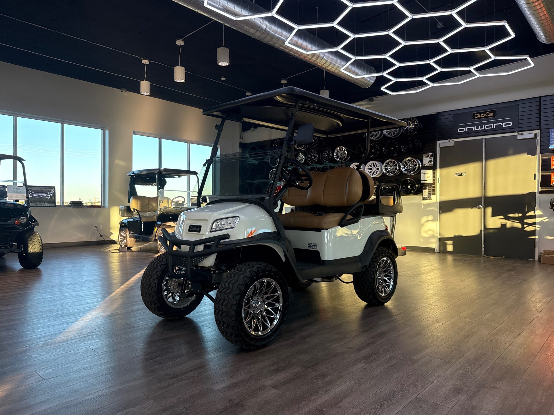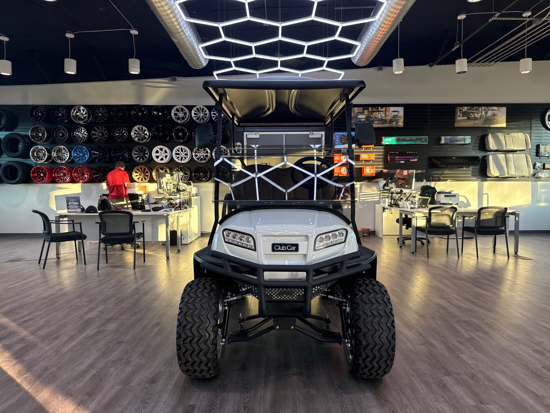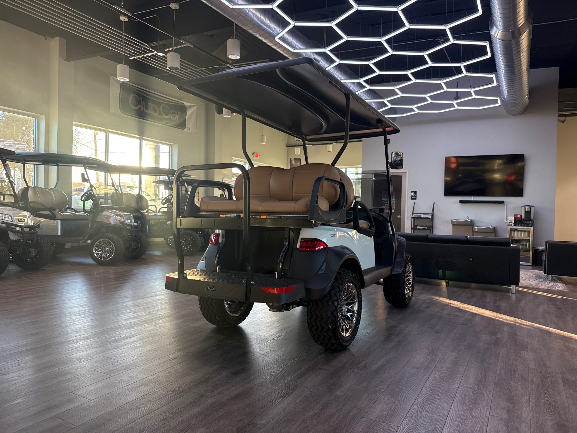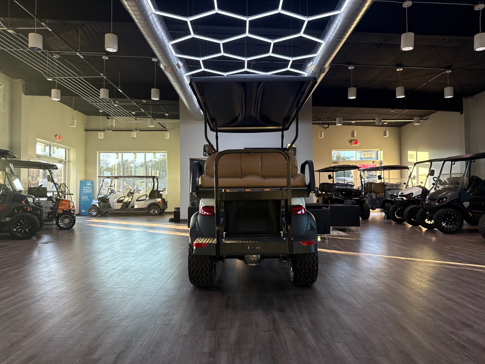 This 4-passenger golf cart features a robust 29 hp peak motor, an impressive 3.1 kWh Lithium-Ion battery, and highlights like LED lighting and a factory lift kit for enhanced performance.