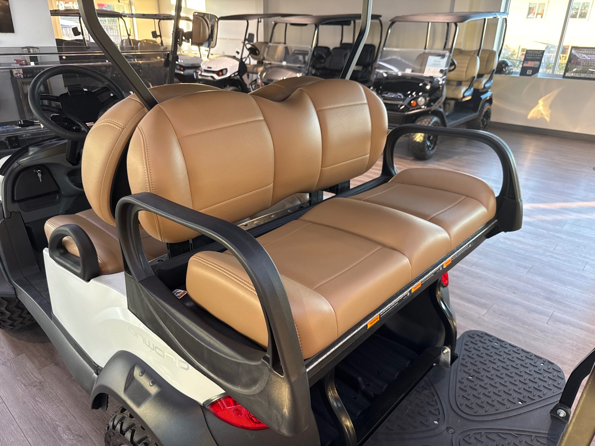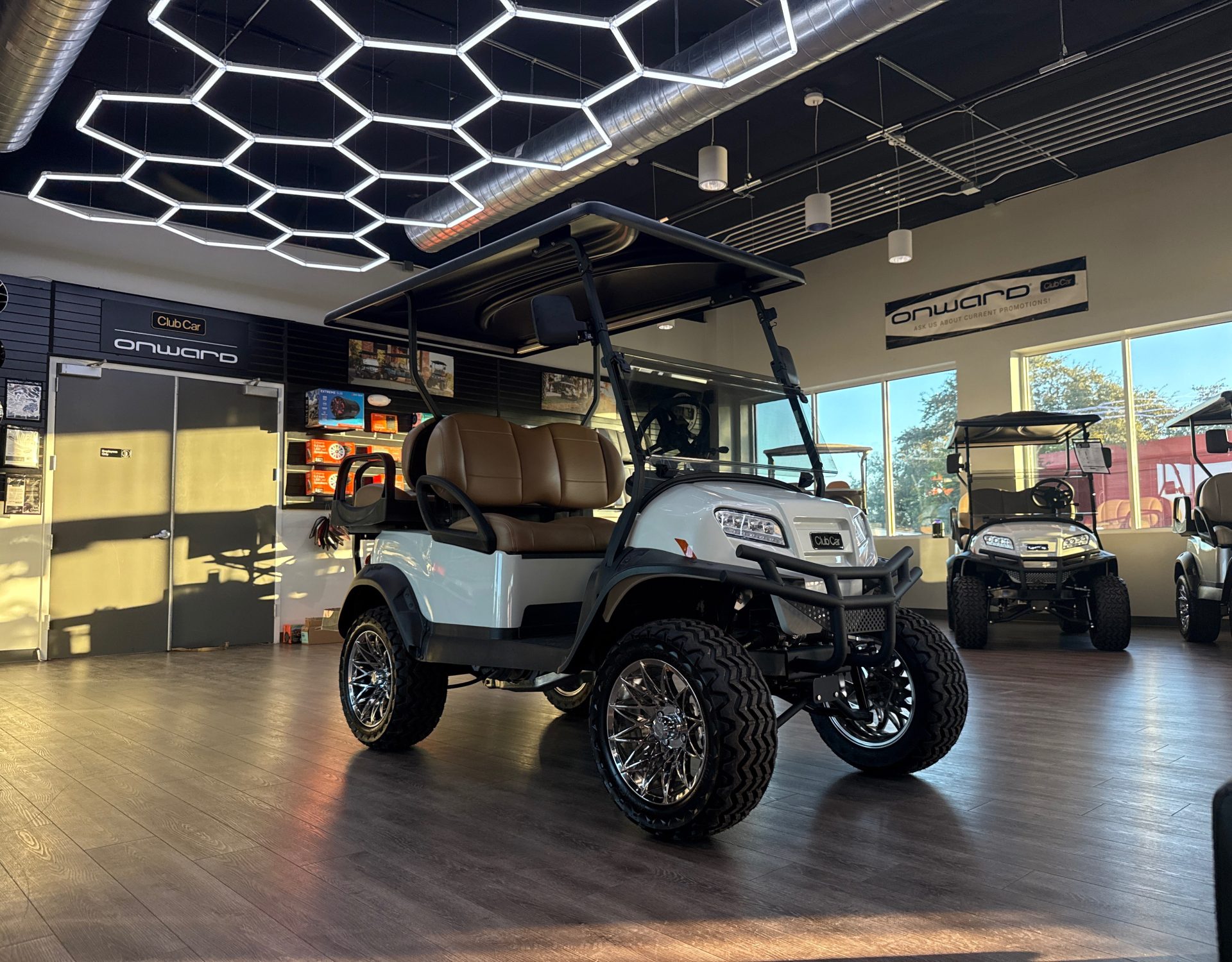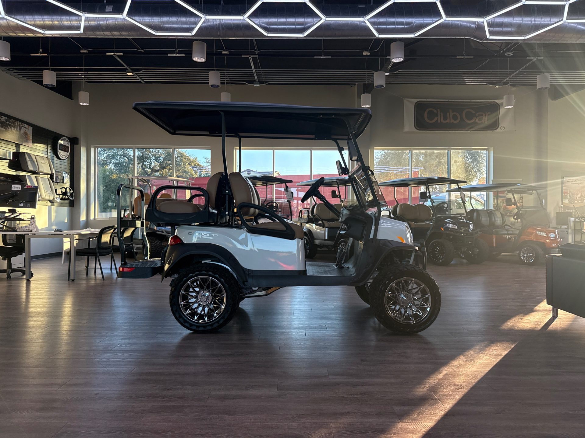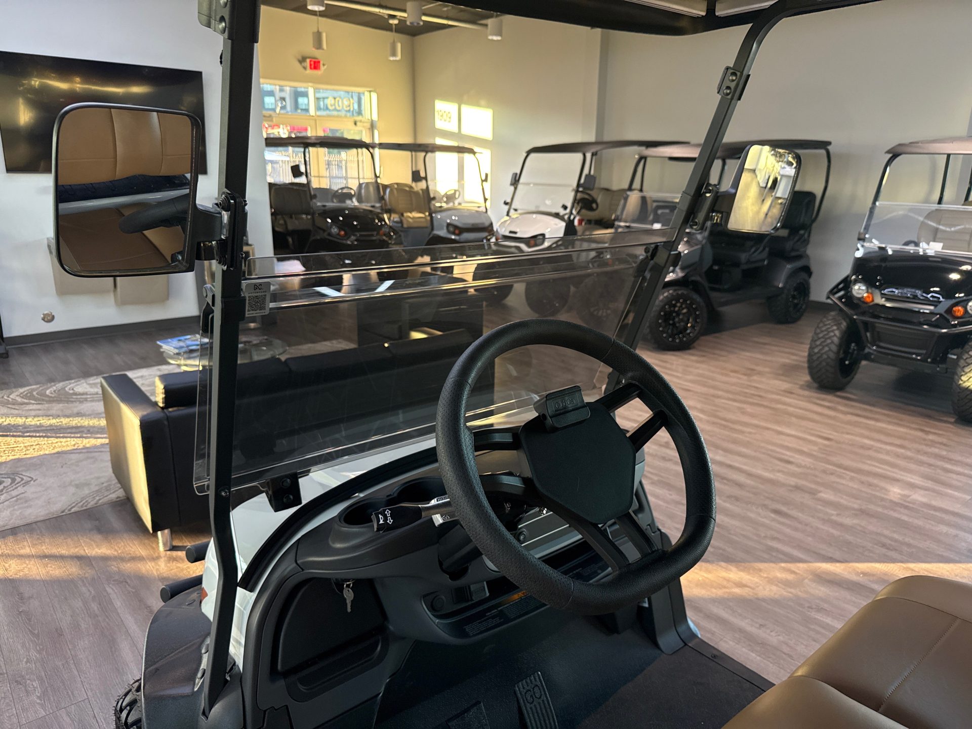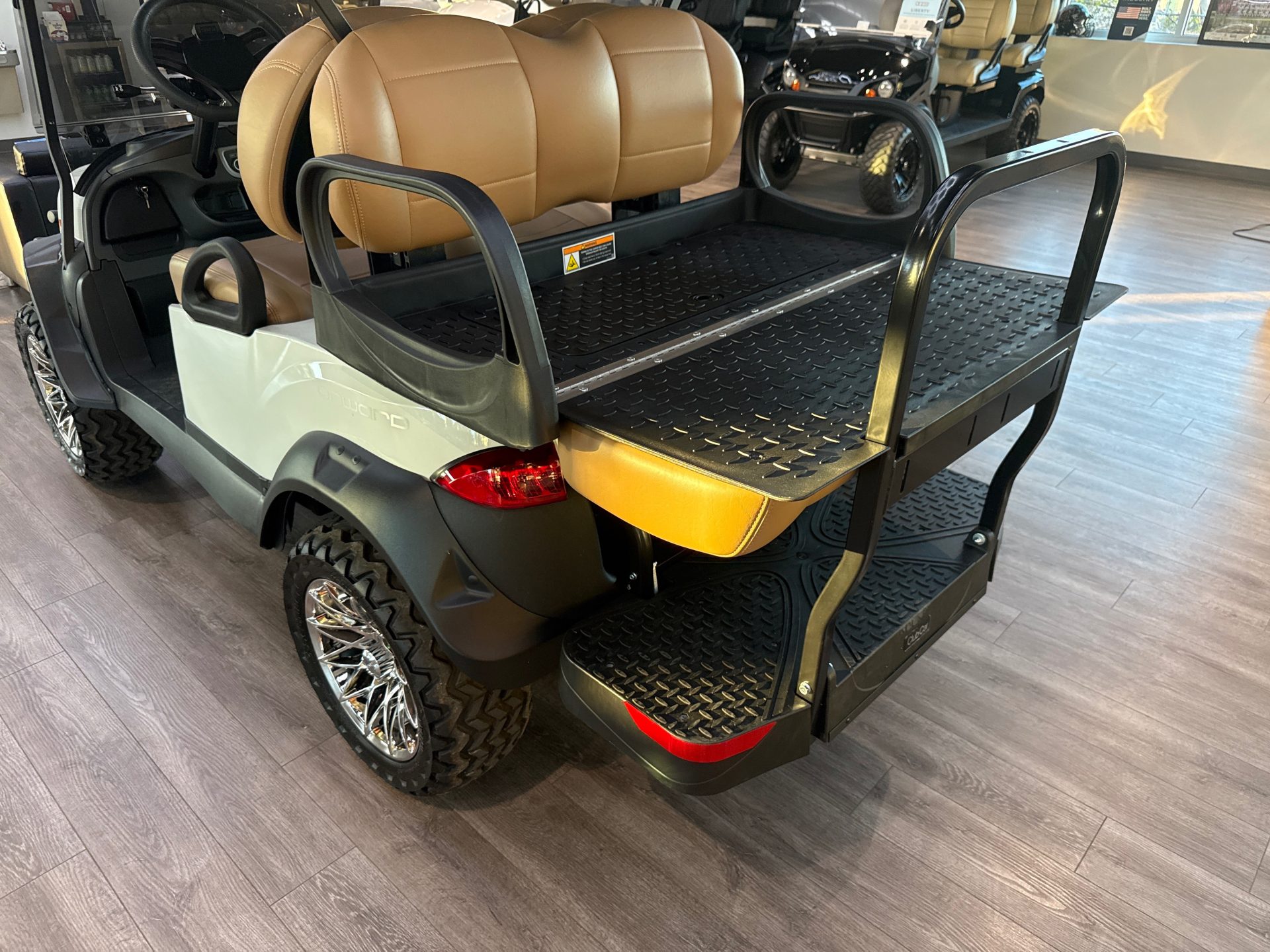 This 4-passenger golf cart features a robust 29 hp peak motor, an impressive 3.1 kWh Lithium-Ion battery, and highlights like LED lighting and a factory lift kit for enhanced performance.