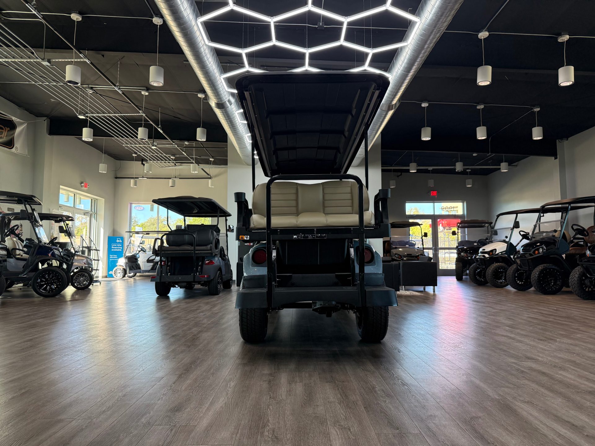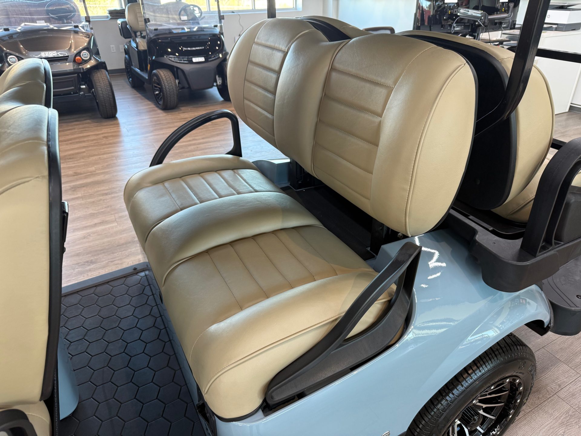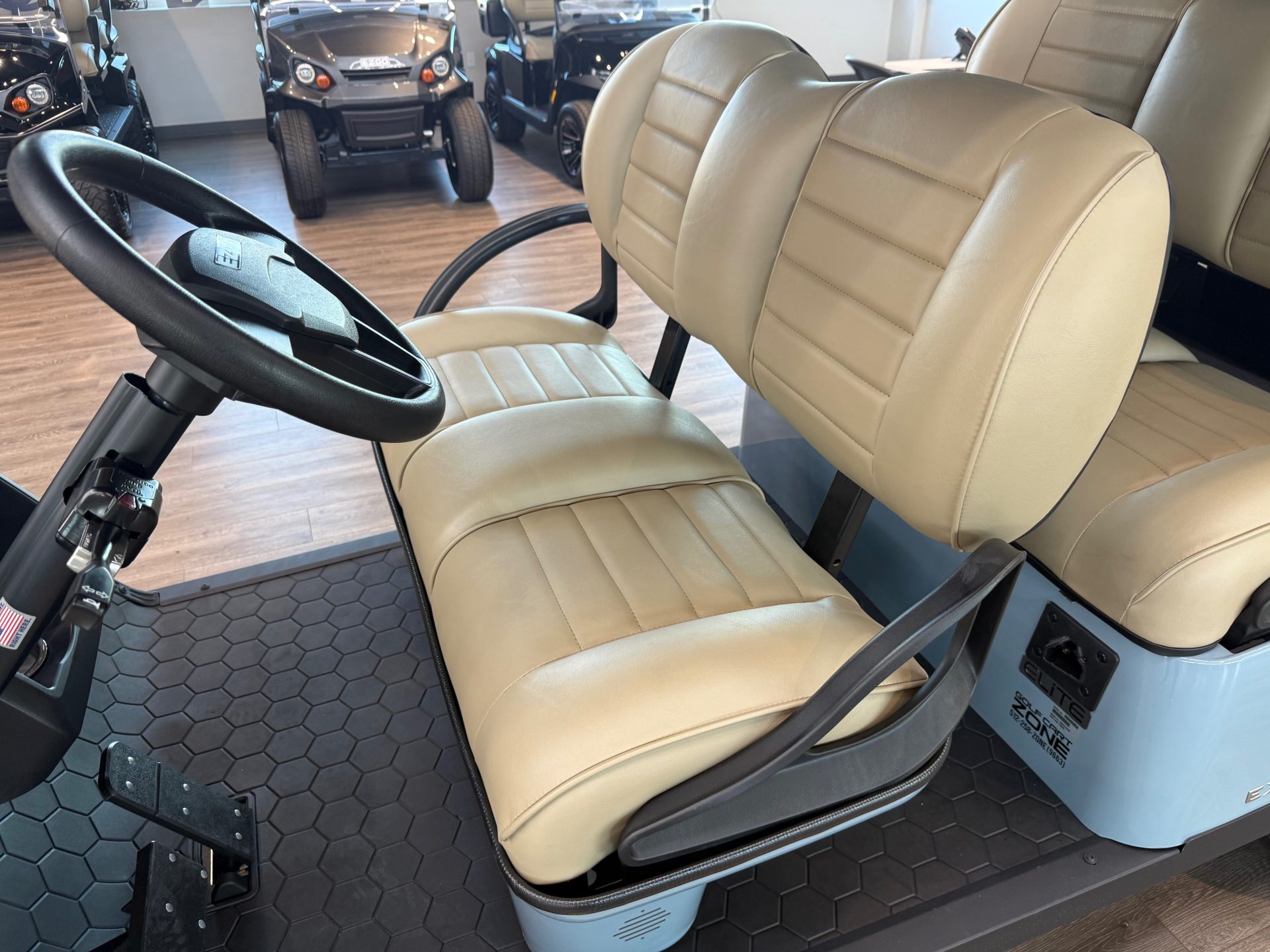 This golf cart combines functionality with style, making it a perfect choice for group outings and leisure rides.